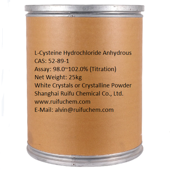 Shanghai Ruifu Chemical Co., Ltd.는 고품질, 연간 3000톤의 생산 능력을 갖춘 L-Cysteine Hydroclide Anhydrous(CAS: 52-89-1)의 선도적인 제조업체이자 공급업체입니다. Ruifu Chemical은 일련의 아미노산 유도체를 공급합니다. 경험이 풍부한 L-시스테인 염산염 무수 제조업체 및 공급업체로서 우리는 거의 10년 동안 L-시스테인 염산염 무수물을 공급 및 수출해 왔습니다. 안심하고 구매해 주십시오. 우리는 COA, 전세계 배송, 소량 및 대량 수량을 제공할 수 있습니다. L-시스테인염산염 무수물에 관심이 있으시면, 문의처: alvin@ruifuchem.com