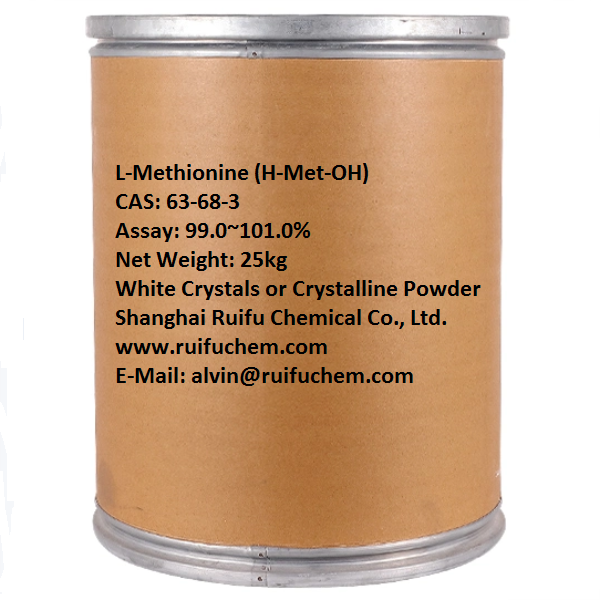 Shanghai Ruifu Chemical Co., Ltd.는 고품질, 연간 생산 능력 10,000톤을 갖춘 L-메티오닌(H-Met-OH; 약식 Met 또는 M)(CAS: 63-68-3)의 선도적인 공급업체입니다. 중국 최대 아미노산 공급업체 중 하나인 Ruifu Chemical은 AJI, USP, EP, JP 및 FCC 표준과 같은 국제 표준에 맞는 아미노산을 공급합니다. 우리는 COA, 전세계 배송, 소량 및 대량 수량을 제공할 수 있습니다. L-메티오닌에 관심이 있으시면, 문의처: alvin@ruifuchem.com